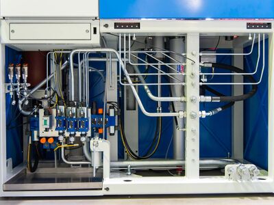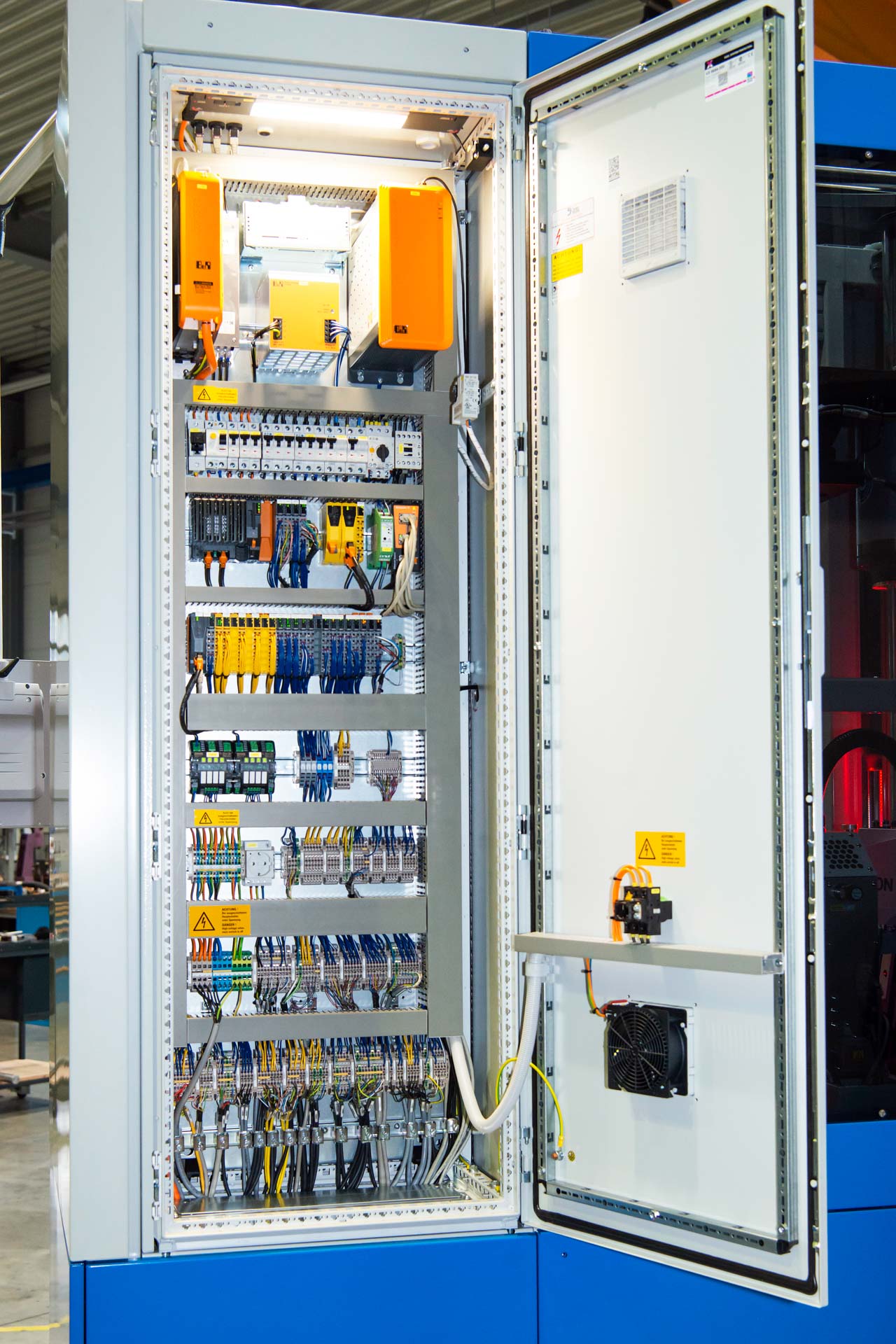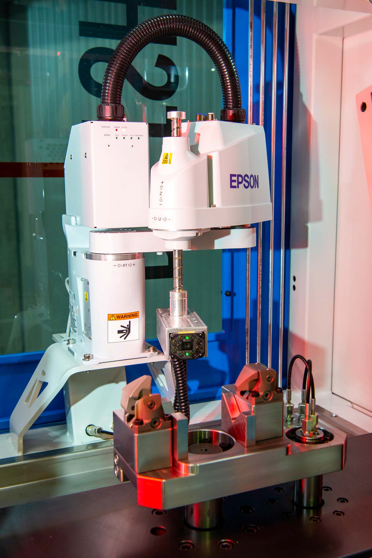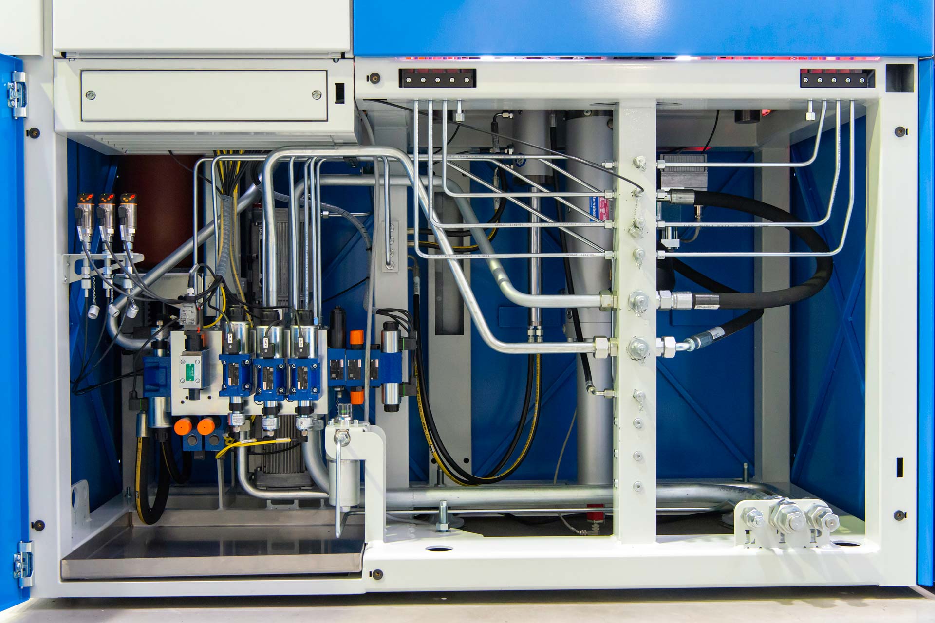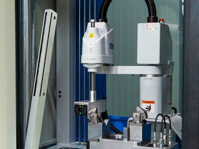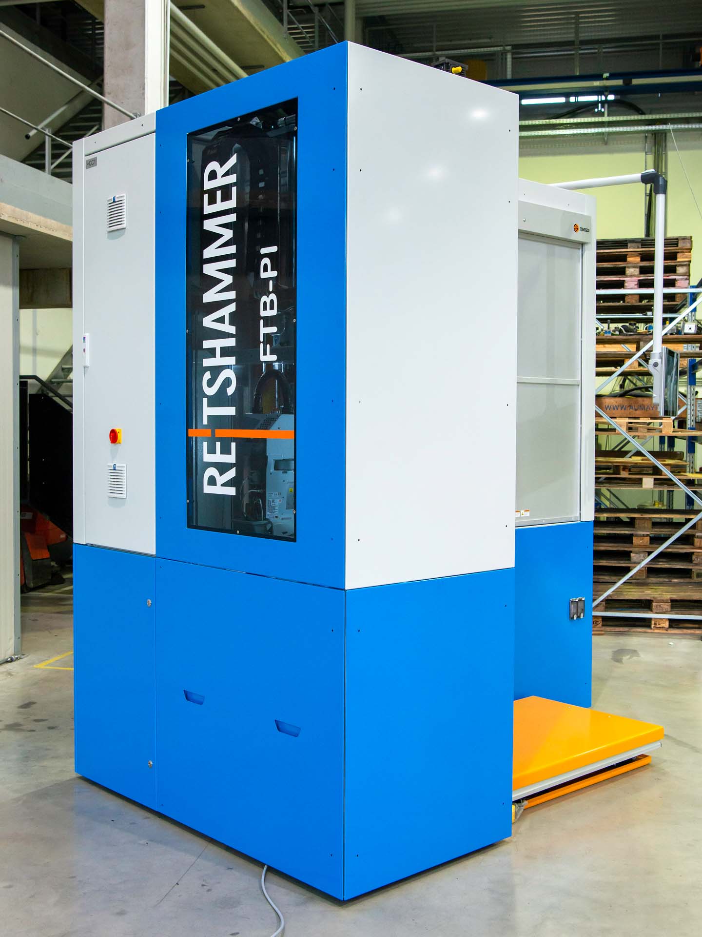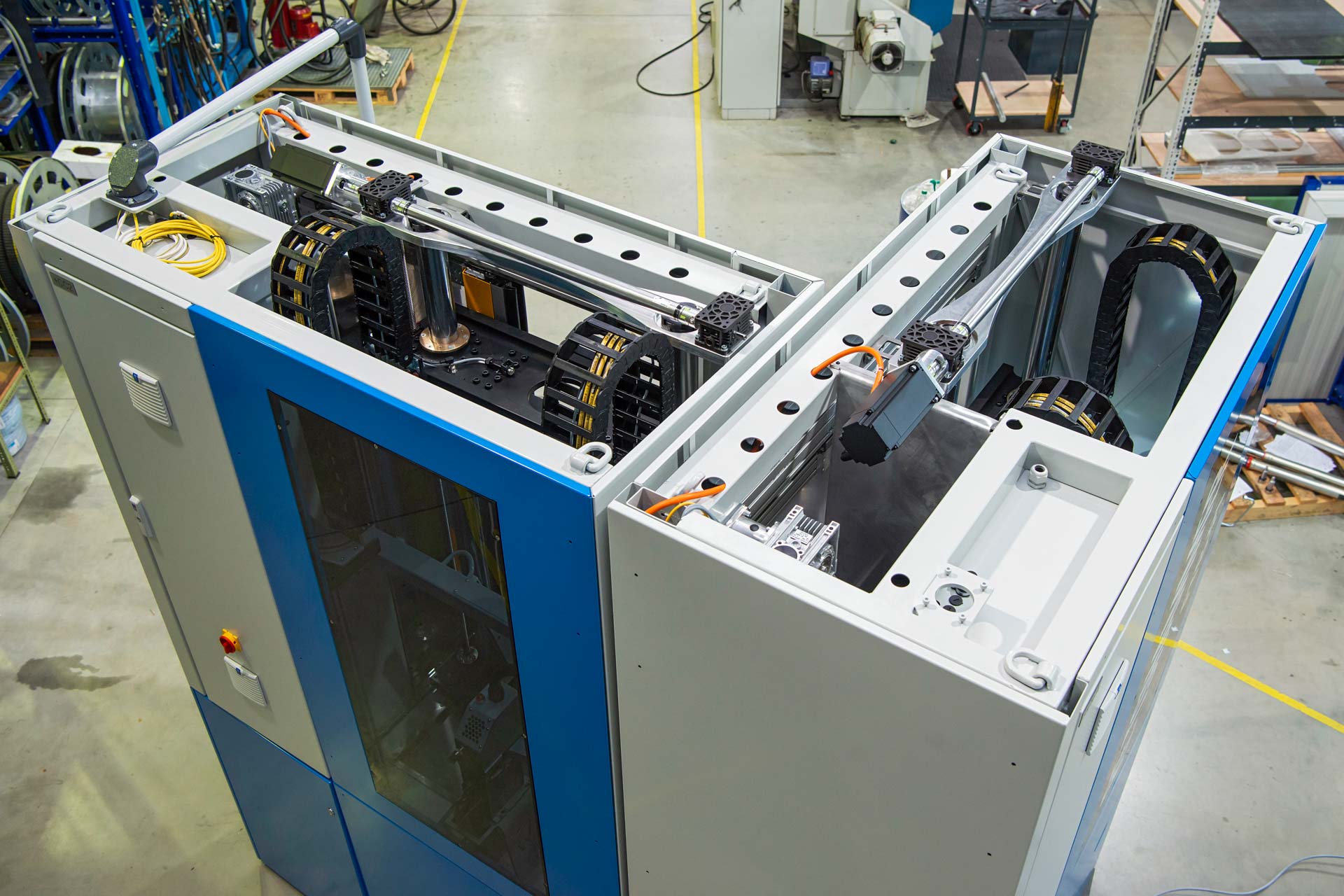 Mit dieser Maschine wird eine 100% Prüfung von produzierten Federgabeln für Motorrädern durchgeführt. Für ein prozessparalleles Bestücken wurde der Prüfraum in doppelter Ausführung realisiert.