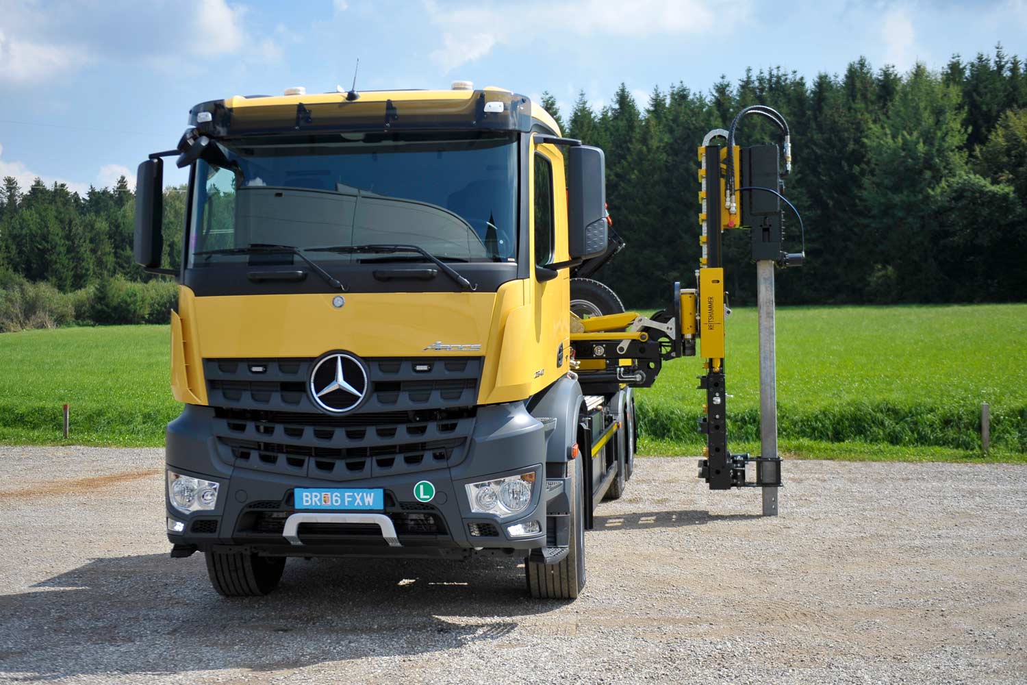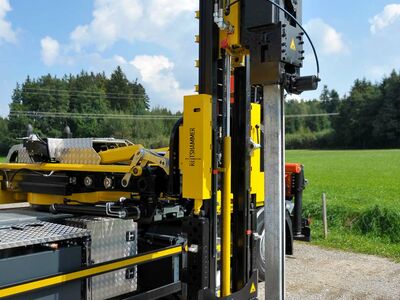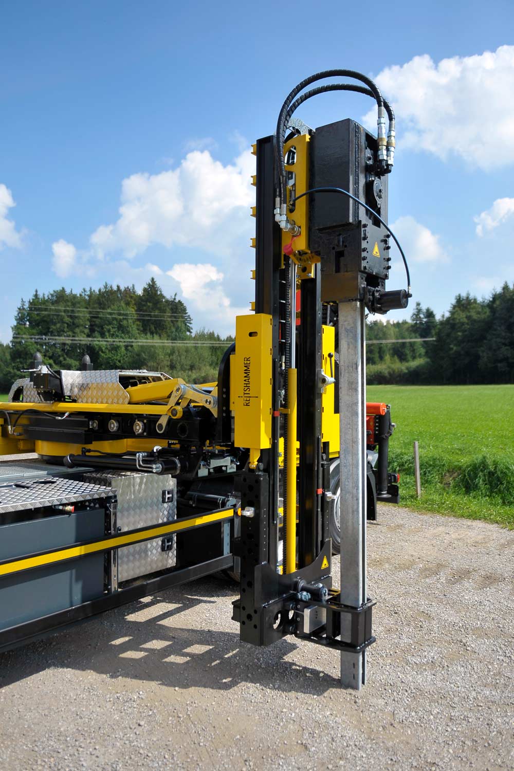 Die Reitshammer GmbH wurde damit beauftragt ein leistungsstarkes und gleichzeitig flexibles LKW Rammgerät zur Leitschienenmontage zu entwickeln.