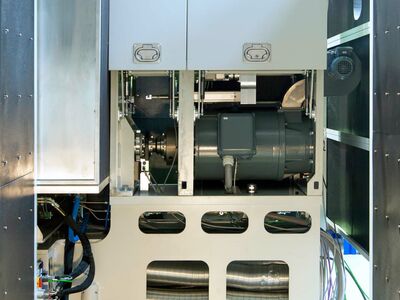 Der Prüfstand ist mit einem Schnellwechselsystem (Antriebswelle, Kühlwasser, Treibstoff, Druckluft, Elektrik) für Motorprüfpaletten (nicht dargestellt) ausgestattet, welche die Schnittstelle zwischen Prüfstand und Motor bilden.